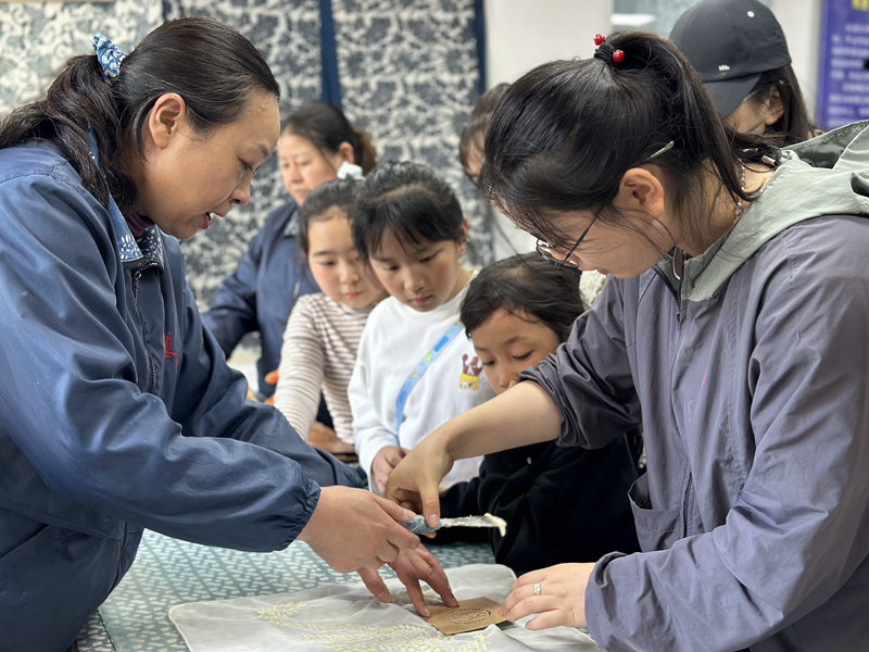 南通藍(lán)印花布博物館的“青出于藍(lán)——國家級非遺南通藍(lán)印花布”研學(xué)項(xiàng)目讓游客動手體驗(yàn)傳統(tǒng)印染技藝