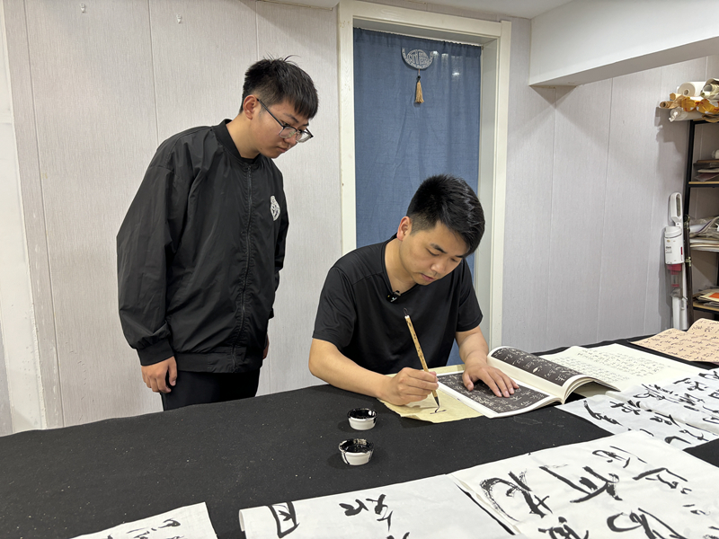 對(duì)于書法求學(xué)者,他以身示范,發(fā)出經(jīng)驗(yàn)之談。他說:“一方面要致敬經(jīng)典,向經(jīng)典學(xué)習(xí)。好的書法,都是要以學(xué)習(xí)古代經(jīng)典法帖為基礎(chǔ);另一方面要不怕吃苦、持之以恒,以虛心要學(xué)的態(tài)度,堅(jiān)持去練去寫。付出之后,肯定會(huì)有所收獲?!?/p>